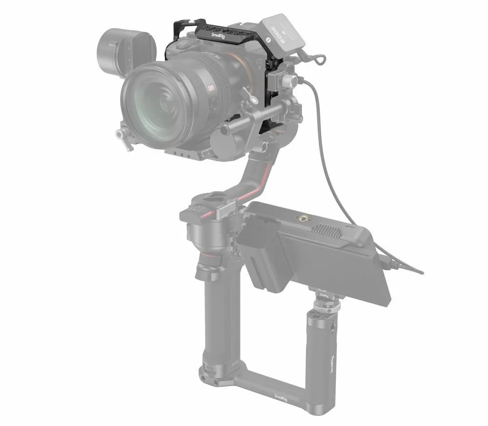 Прочная клетка из цельного куска алюминия для камер Sony A7 IV, A7R IV, A7R V, A7S III, A1. Множество резьбовых гнезд 1/4"-20, 3/8"-16 и Arri 3/8”, 2 холодных башмака и планка НАТО (слева) позволяют установить всё разнообразие дополнительных аксессуаров, в том числе: верхние и боковые ручки, мониторы, рекордеры, микрофоны, лампы постоянного света, фиксаторы для HDMI кабеля и так далее. Справа и слева предусмотрены проушины для крепления ремня. Клетка предоставляет свободный доступ к батарее, карте памяти, всем интерфейсам и большинству органов управления.