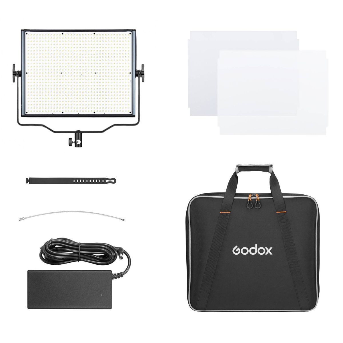 Светодиодный осветитель мощностью 63 Вт, регулируемая цветовая температура 2500-10000К, режим CCT/ HSI/ RGB/ GEL/ FX, 14 спецэффектов, освещенность 2410 лк, регулировка яркости 0-100%, питание от сети или от батарей NPF/V-mount (приобретается отдельно), ЖК-дисплей, съемный рассеиватель, U-образный кронштейн (лира).