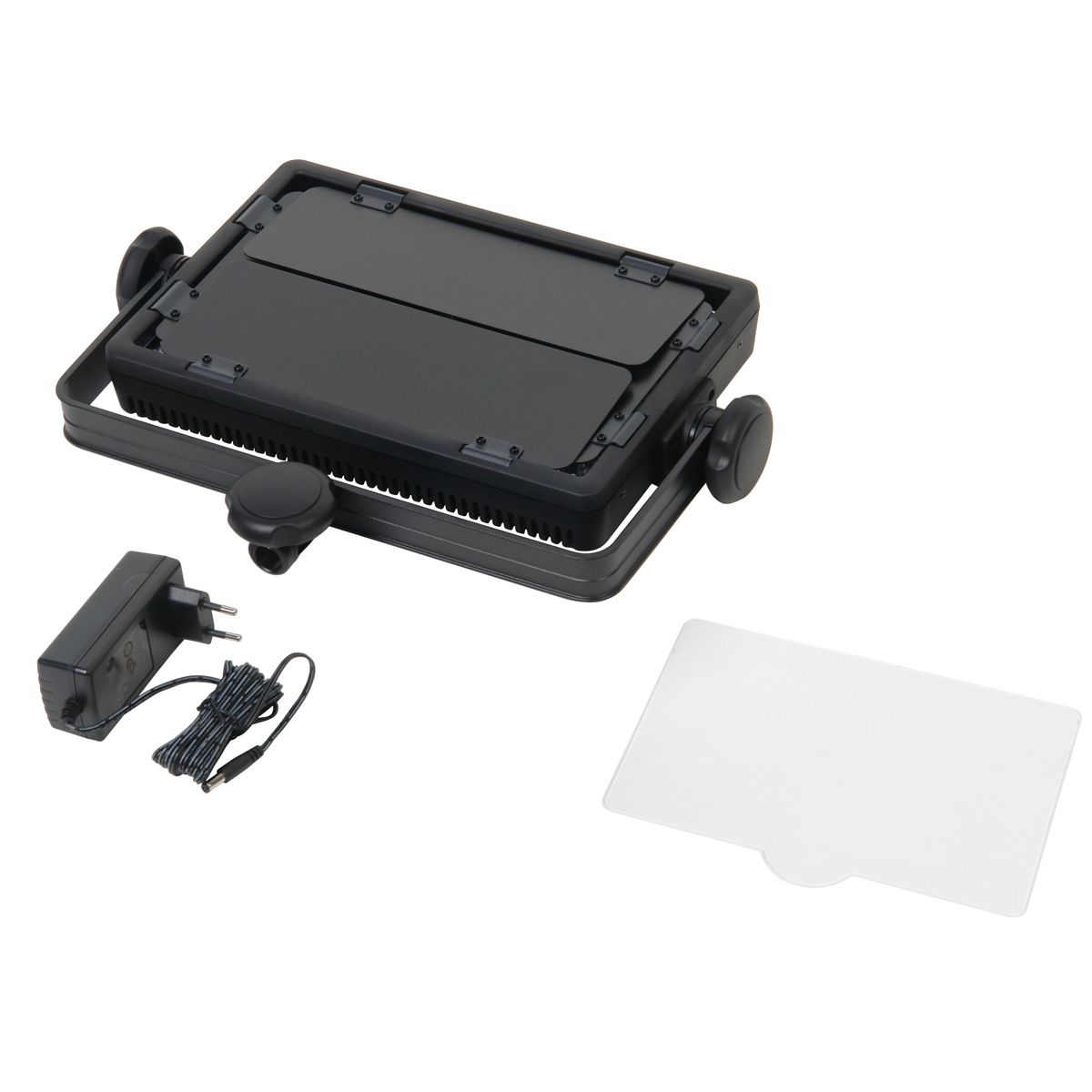 Мощность 32 Вт, 3300К-5600К, питание от сети или аккумулятора (опция), ЖК-дисплей, регулировка яркости 10-100%, выбор канала и группы, возможность дистанционного управления, шторки и белый фильтр (в комплекте).