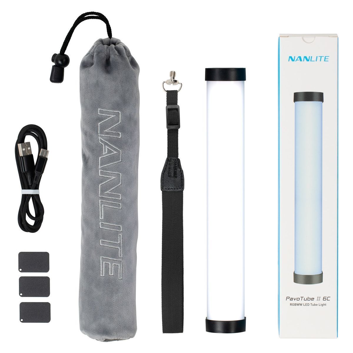 Светодиодная трубка Nanlite PavoTube II 6C RGBWW - портативный универсальный осветительный прибор с регулировкой яркости от 0 до 100% с максимальной освещенностью 520 люмен (183 люкс на расстоянии 1 м - при 5600K), полным спектром RGB и предварительно запрограммированными специальными световыми эффектами.